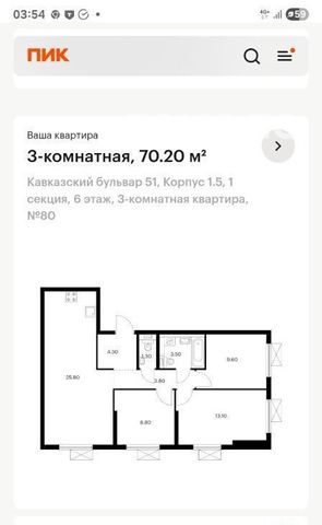 3-к кв. Москва Кавказский бул., 51к1 (70.0 м²)