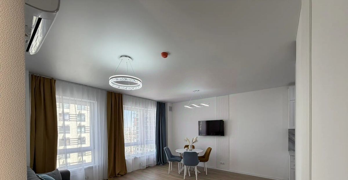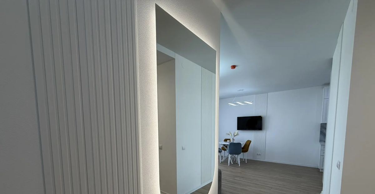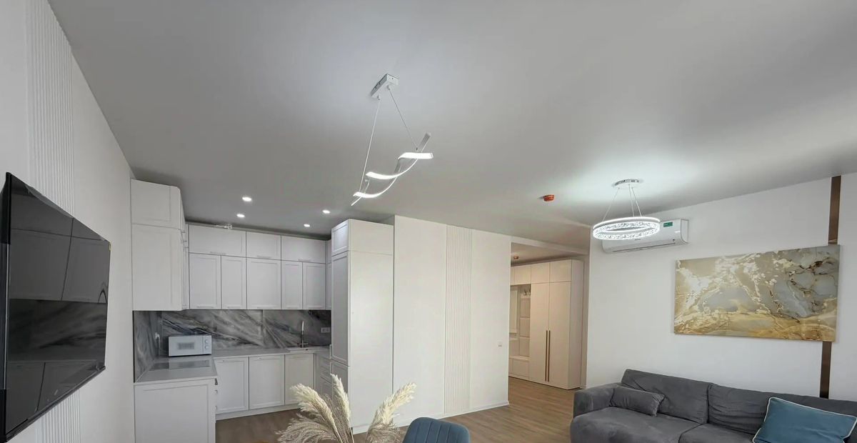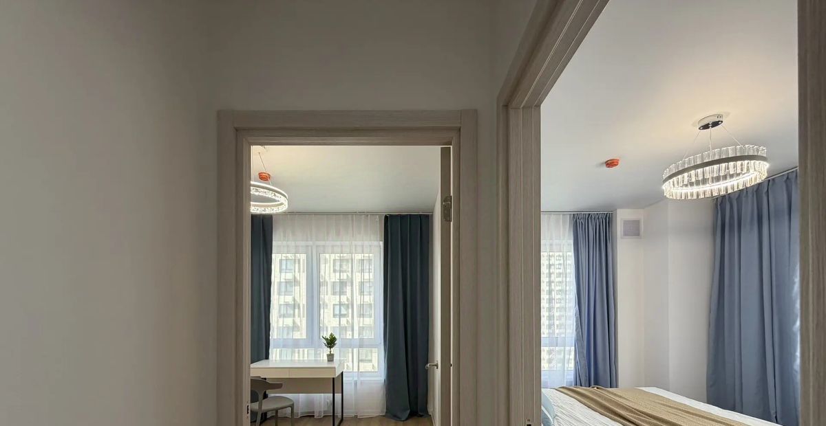 В квартире есть всё необходимое для комфортного проживания. Светлый и современный интерьер с дизайнерским ремонтом. Новая мебель присутствует как в кухне-гостиной, так и в комнатах, поэтому можно сразу заселяться. Имеется все необходимое для комфортной жизни: кондиционер, холодильник, телевизор, стиральная машина с функцией сушилки. Два совмещённых санузела, один с душевой кабиной второй с ванной.
