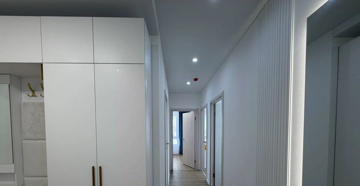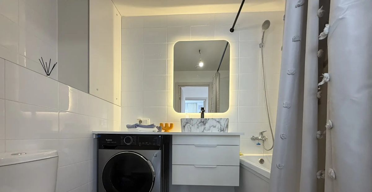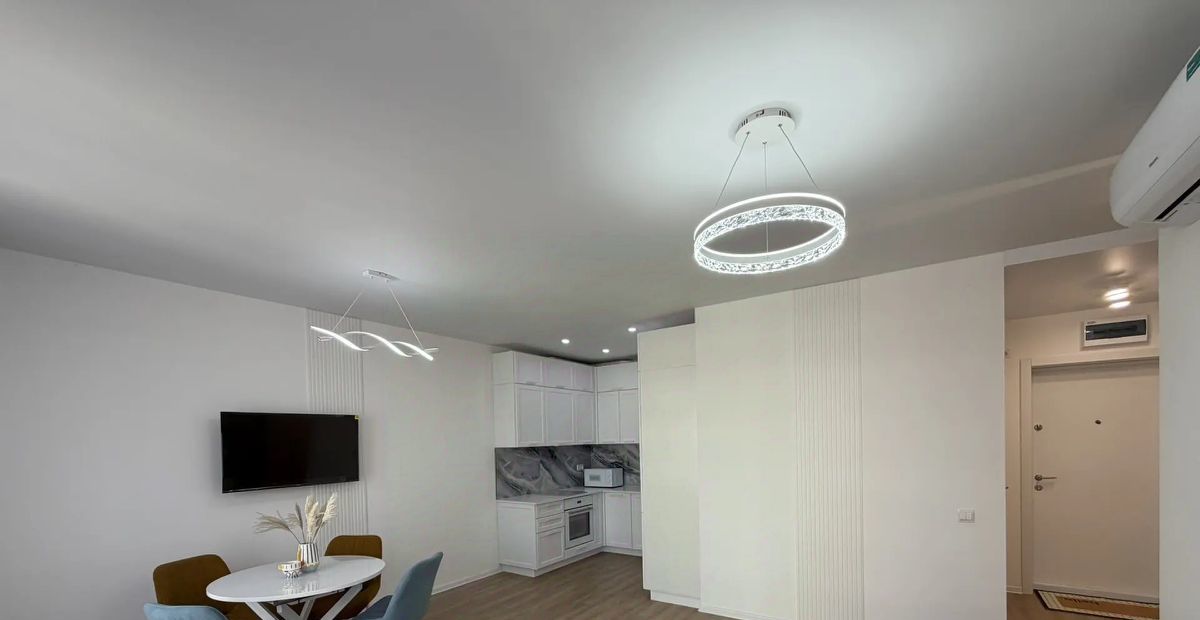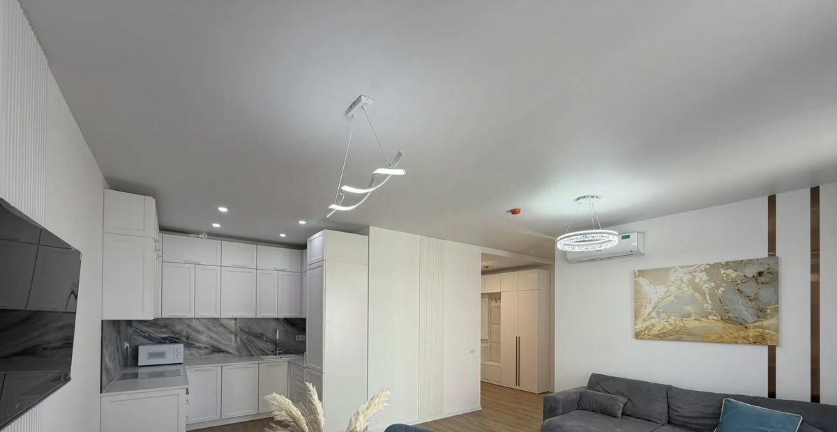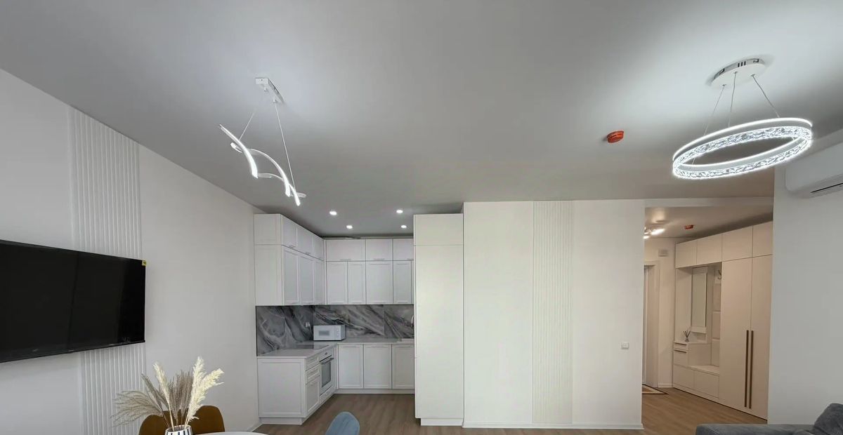 В квартире есть всё необходимое для комфортного проживания. Светлый и современный интерьер с дизайнерским ремонтом. Новая мебель присутствует как в кухне-гостиной, так и в комнатах, поэтому можно сразу заселяться. Имеется все необходимое для комфортной жизни: кондиционер, холодильник, телевизор, стиральная машина с функцией сушилки. Два совмещённых санузела, один с душевой кабиной второй с ванной.