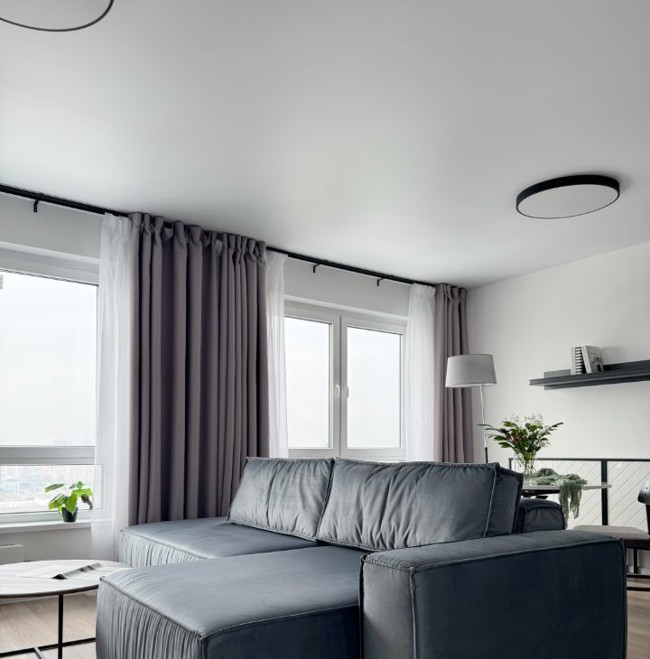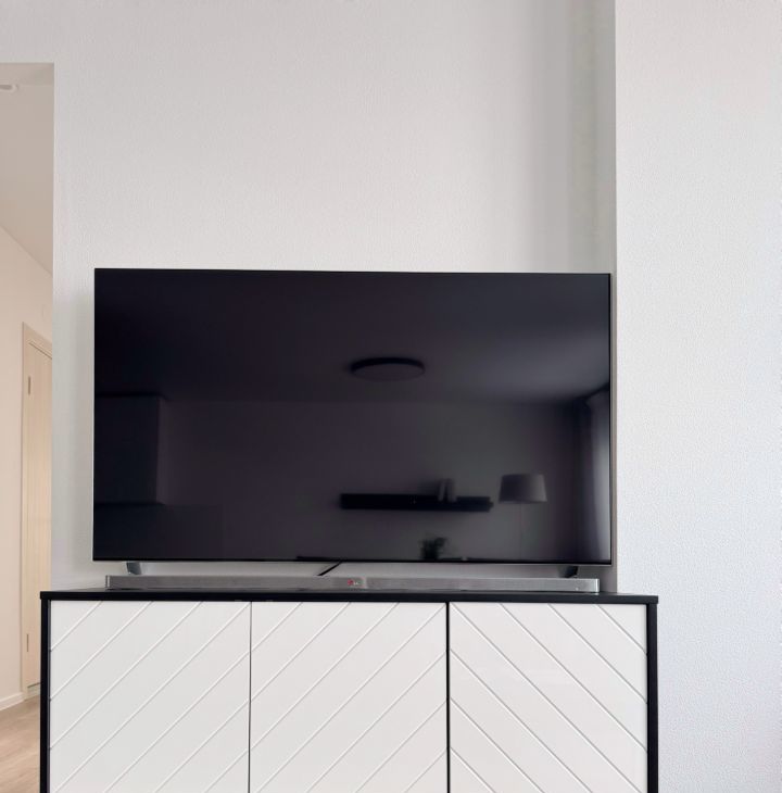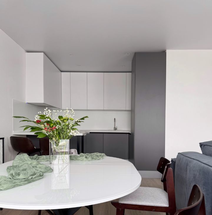 - Просторная кухня-гостиная с обеденной зоной и телевизором;