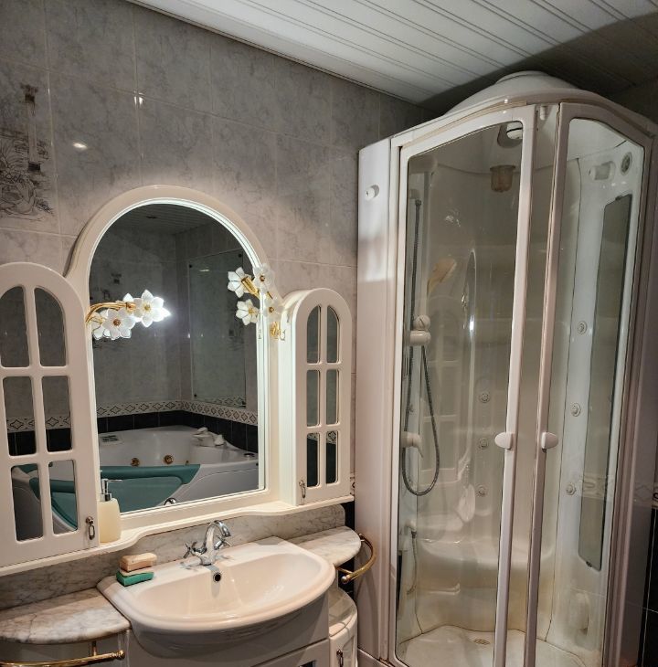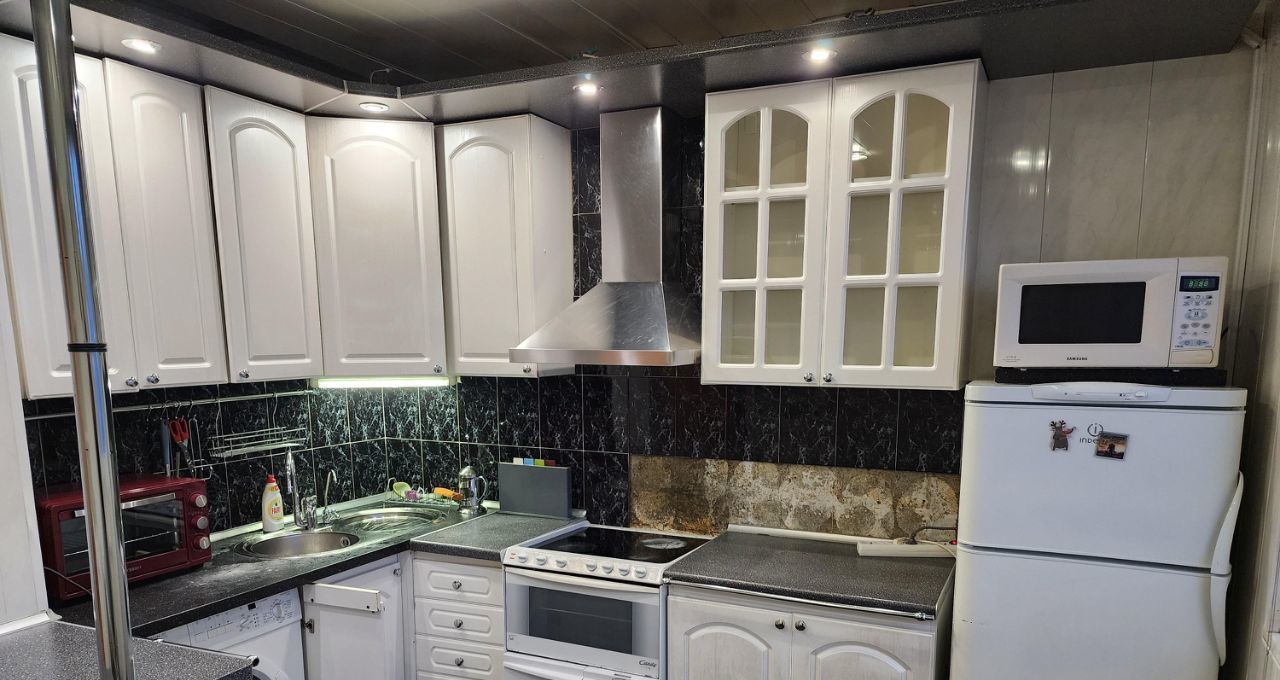 За счет перепланировки увеличен санузел (8 кв.м.), где установлено джакузи, душевая кабина и сантехника, сделаны теплые полы (в с/у и на кухне). Встроенная кухня со всей бытовой техникой, имеются стиральная машина и кондиционер. Окна - ПВХ, лоджия застеклена. Также, в шаговой доступности торговые комплексы, а во дворе дома имеются школа и детский сад.