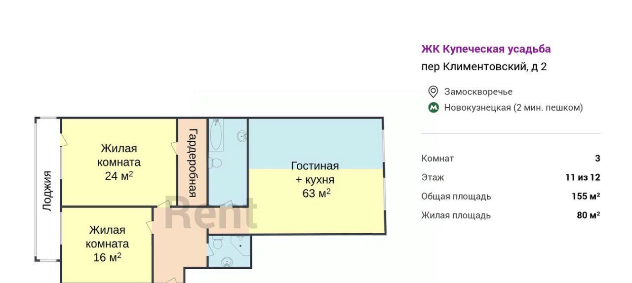 3-к кв. Москва Климентовский пер., 2 (155.0 м²)