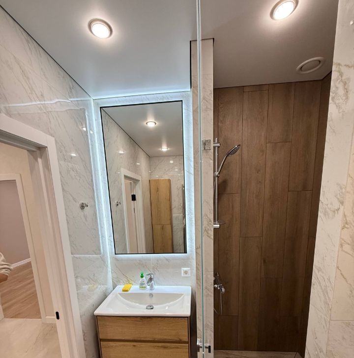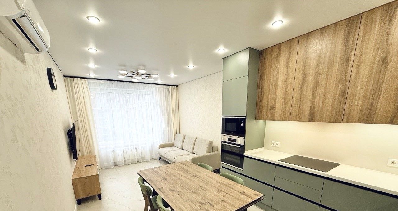 В квартире никто не проживал, сделан ремонт из качественных и дорогостоящих материалов. Вся мебель и техника новая. 2 санузла, 2 изолированные спальни (одна из которых мастер-спальня) и кухня -гостиная. Установлены бризеры и кондиционеры в каждой комнате, фильтр для воды, накопительный водонагреватель, бесшовный Wi-Fi с точками доступа в каждой комнате.