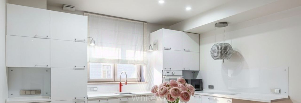 Квартира с 2 спальнями и террасой в комплексе "Дом на Композиторской" у Нового Арбата. Квартира общей площадью 95 м² расположена на 5 этаже. Выполнен дизайнерский ремонт в современном стиле в светлых тонах. Из окон открываются виды на улицу и в тихий двор. Спланирована кухня-гостиная, 2 спальни, ванная комната, 2 санузла, гардеробная, холл, летняя терраса под навесом. Квартира укомплектована кухонной мебелью и оборудована бытовой техникой. Комнаты оснащены кондиционерами. Машино-место в подземном паркинге входит в стоимость.