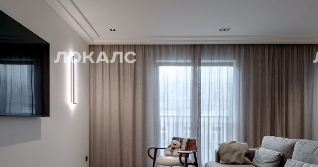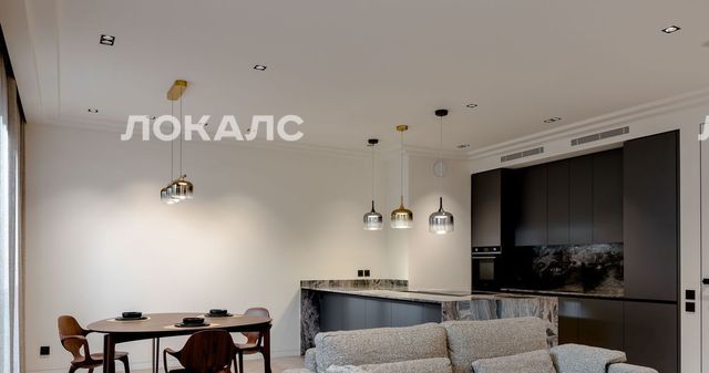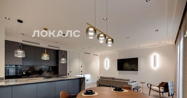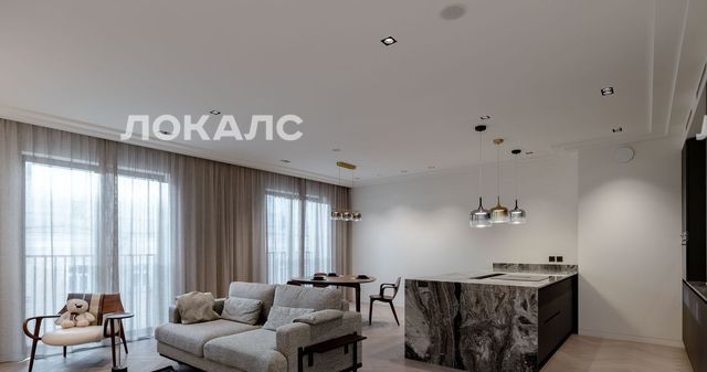 Квартира очень удобной планировки: кухня -гостиная с двумя панорамными окнами и французскими балконами, полностью укомплектована мебелью и техникой от ведущих брендов (встроенная бытовая техника SMEG), итальянская кухня, остров, TV и диванная зона. Система "Умный дом". Окна гостиной выходят в тихий переулок.
