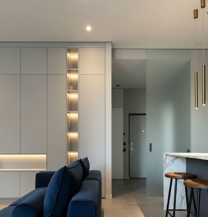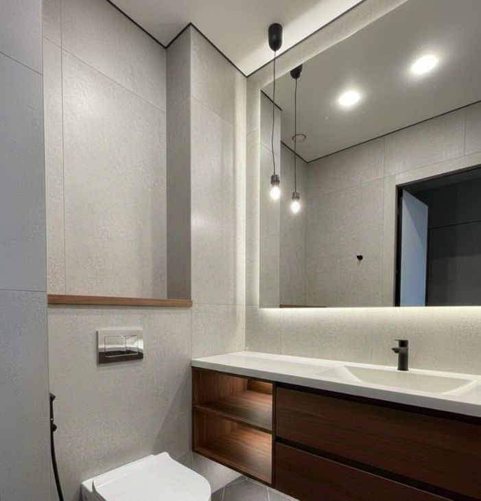 Сдержанный стиль. Интерьер выполнен в современной эстетике с акцентом на функциональность. Нейтральная цветовая гамма создаёт спокойную атмосферу и служит универсальной основой для вашего декора.