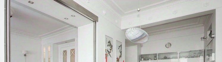 В квартире выполнен дизайнерский ремонт, который сочетает исторические детали и современные технологии: