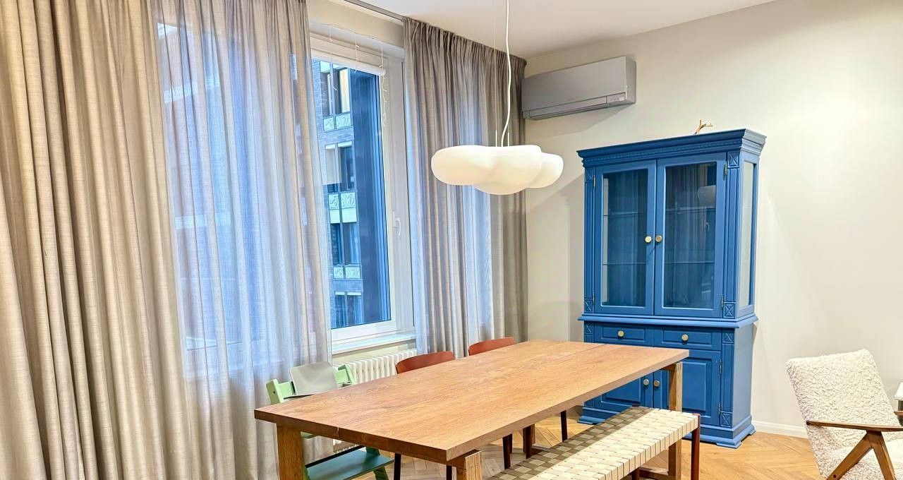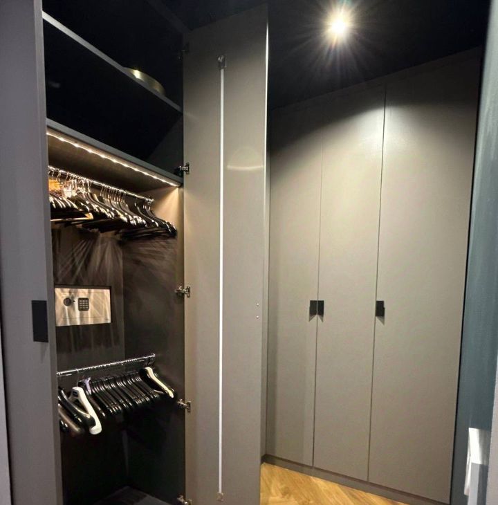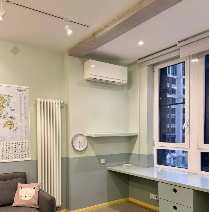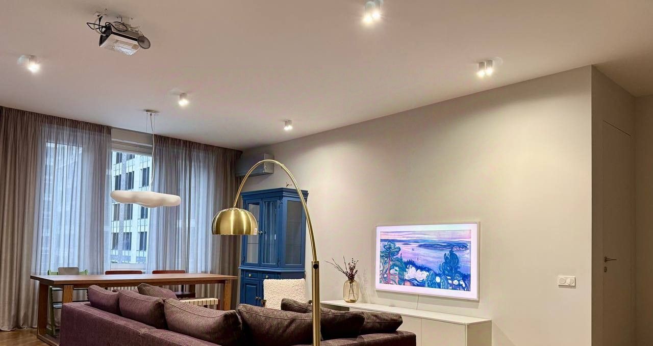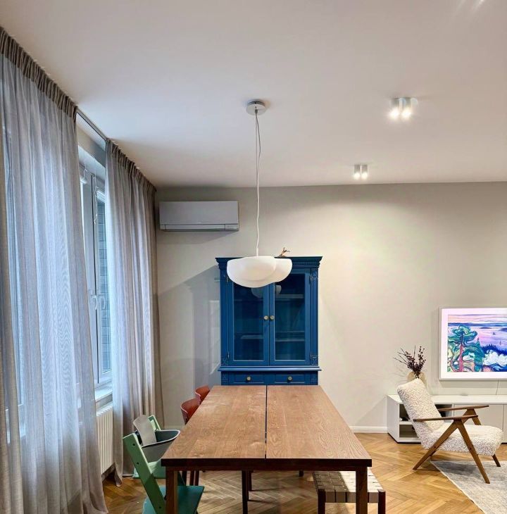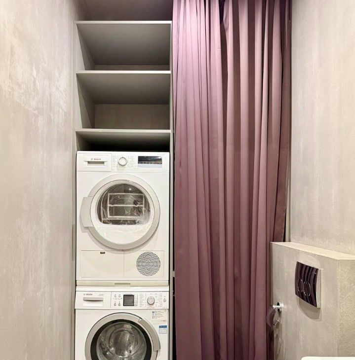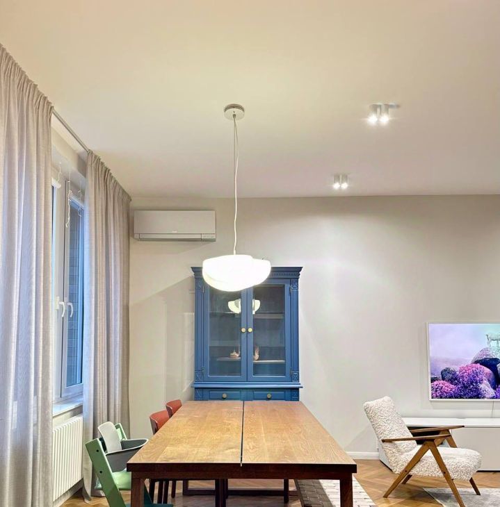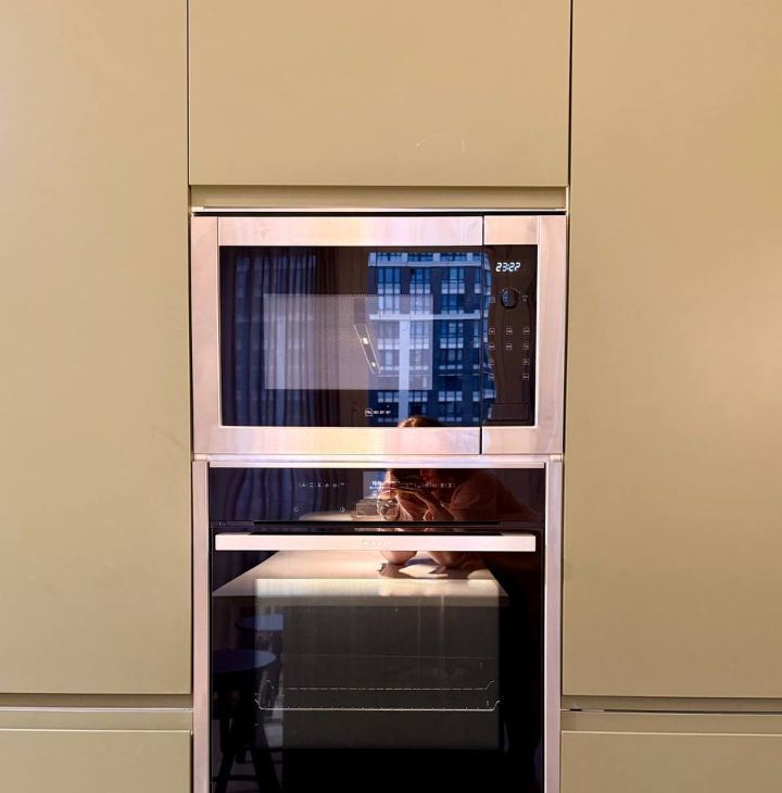 Кондиционеры установлены в каждой комнате. Кухня оборудована духовым шкафом, микроволновой печью, электрическая плита бренда Neff, посудомоечная машина Bosch. Есть стиральная и сушильная машины Bosch (установлены в санузле).
