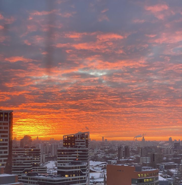 Квартира расположена на 22 этаже современного дома, откуда открывается потрясающий панорамный вид на центр города. Из окон видны сталинские высотки, Останкинская башня и знаковые городские доминанты, а также особенно красивые закаты.