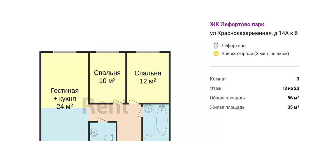 3-к кв. Москва Красноказарменная ул., 14Ак6 (56.0 м²)