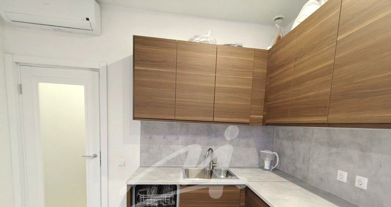 Сделан евроремонт. В каждой комнате и кухне есть кондиционер Hair. Установлены кухня Икея, электроплита Икея, холодильник Indesit, посудомоечная машина maunfeld. Меблированы спальня, гостиная и детская.