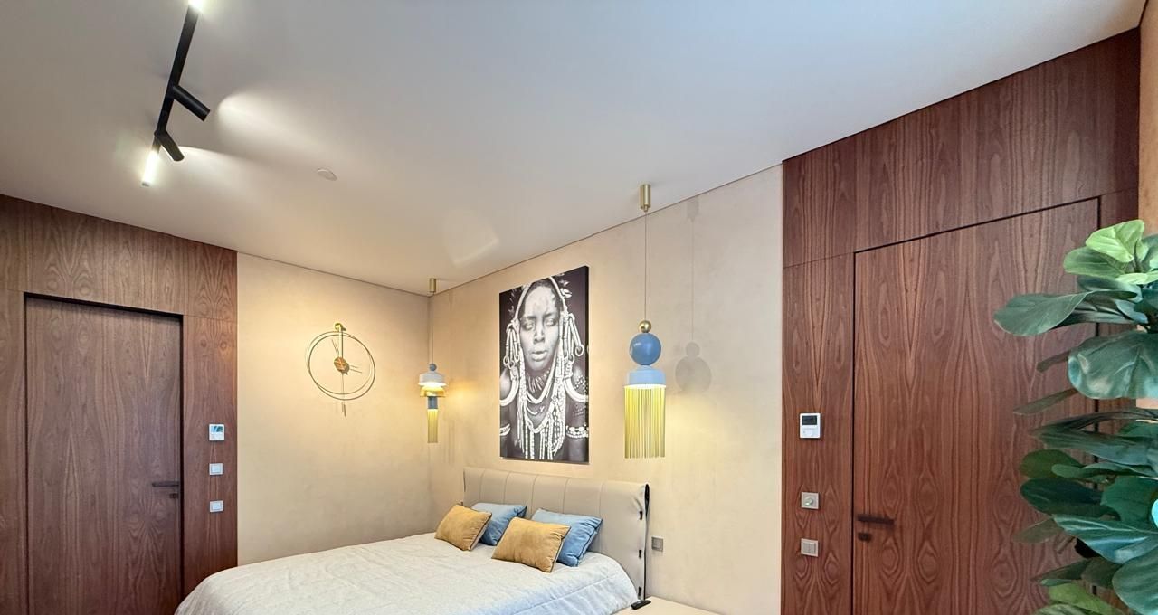 Планировка: гостиная зона совмещенная с кухней и уютной обеденной зоной, мастер-спальня с санузлом оборудованным ванной, вторая спальня, гостевой санузел с душевой кабиной, прихожая.