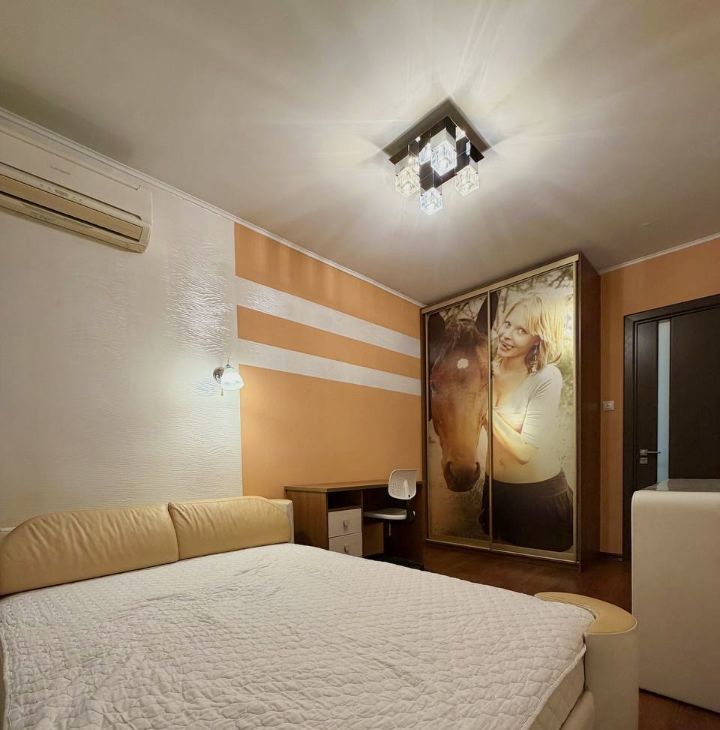 В квартире выполнен косметический ремонт с европланировкой. Две изолированные комнаты, гостиная-кухня, раздельный санузел и балкон с остеклением. В каждой комнате установлены кондиционеры. Есть вся необходимая техника и мебель. Открытая парковка во дворе.