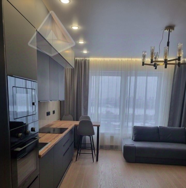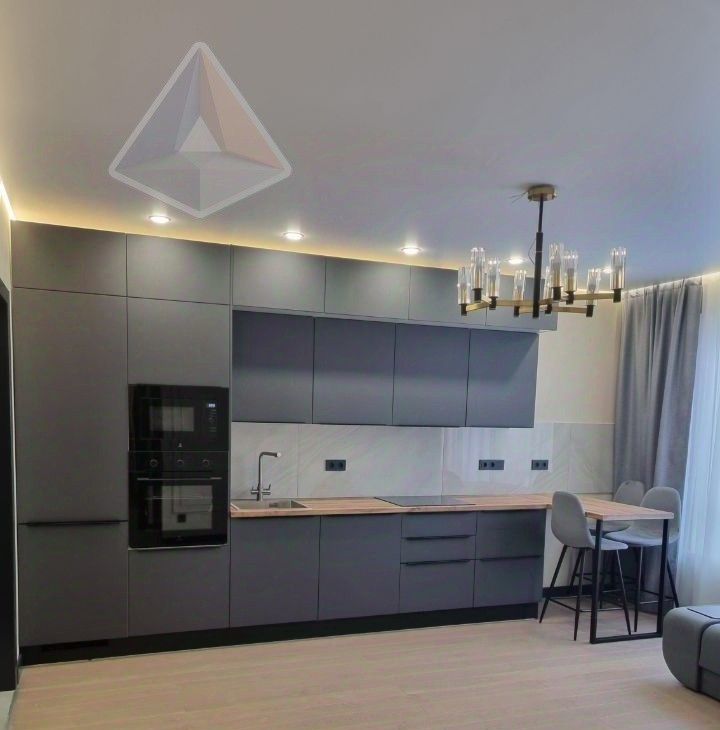 Просторная квартира 58 м² на высоком 23 этаже (потолки 2,7 м): огромная кухня 24 м², жилая площадь 24 м², смежно-изолированная планировка, ванная + отдельный санузел, вид на улицу. Дизайнерский ремонт, стильная мебель, премиум-техника: кондиционер, холодильник, посудомоечная, стиральная и сушильная машины, телевизор, интернет — заезжай и живи в комфорте.