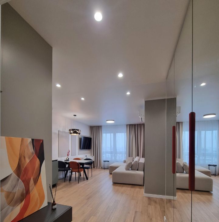 Выполнен качественный Евро ремонт. Дизайн проект квартиры спроектирован под себя, фокус на комфорте, эстетике и качестве материалов. Вся техника Midea.
