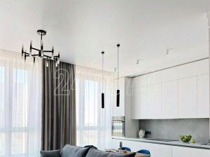 В квартире сделан евроремонт, она полностью готова к комфортному проживанию. Просторная кухня-гостиная оснащена всей необходимой мебелью и техникой, включая холодильник и посудомоечную машину. В каждой из трех комнат установлена мебель, а также есть кондиционер и телевизор. В квартире два совмещённых санузла, один из которых оборудован ванной. Все окна выходят во двор, поэтому в квартире тихо и спокойно.