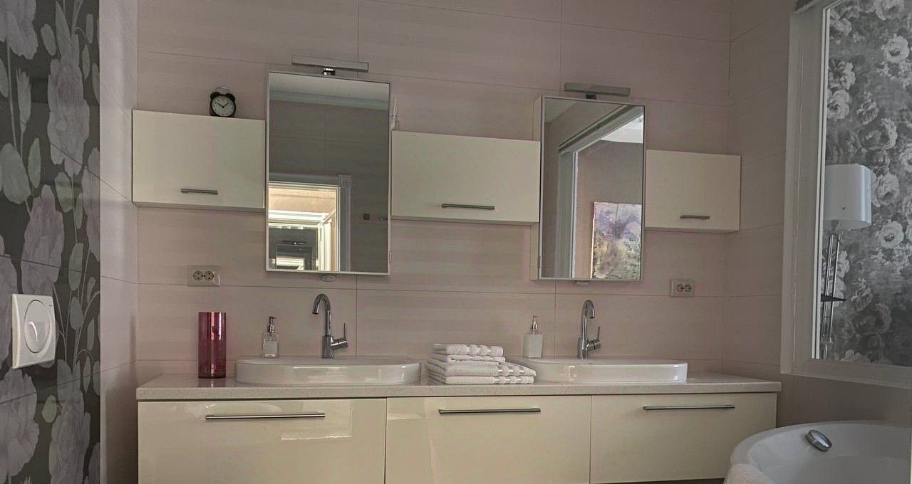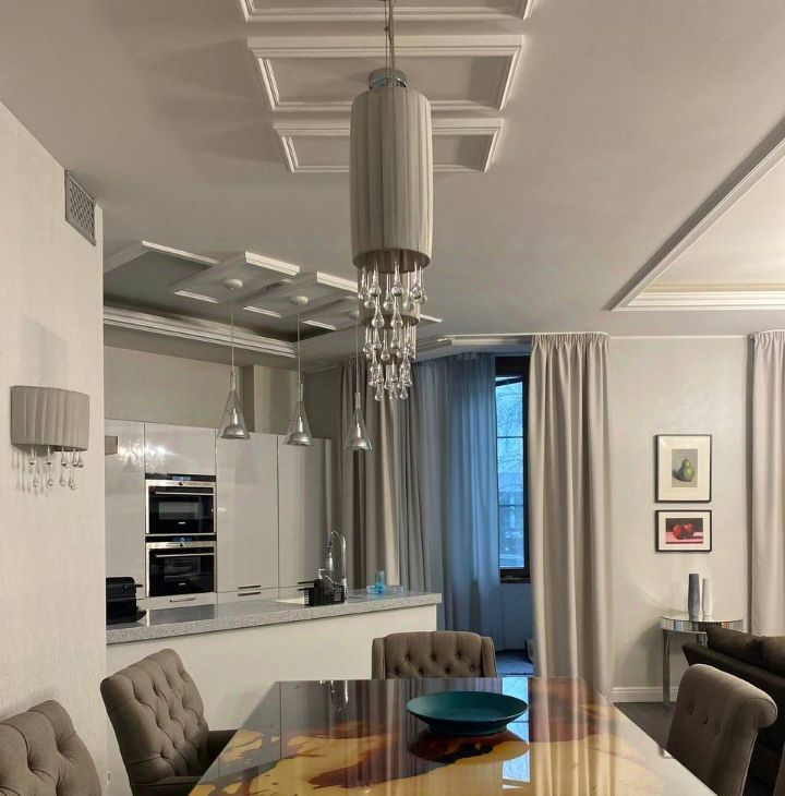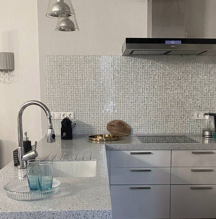 - вся необходимая бытовая техника: 4-х комфорочная варочная панель, духовка, большой холодильник, микроволновка, посудомоечная машина, капсульная кофеварка,электрический чайник