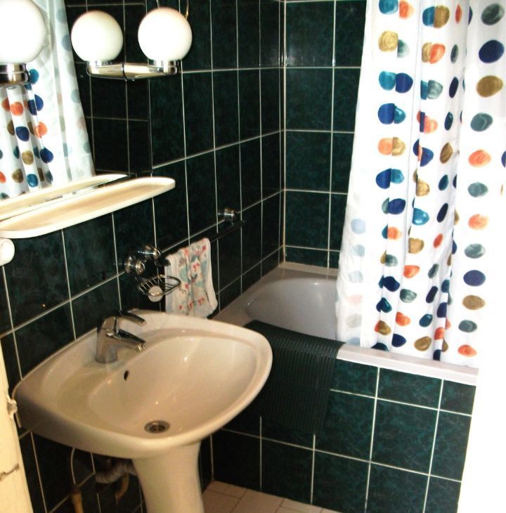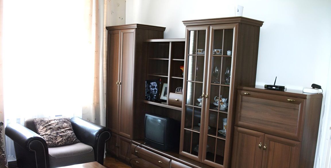 В наличии вся необходимая мебель на кухне и в комнате. Кухня площадью 8 кв. м. оснащена холодильником. В гостиной можно расслабиться, посмотрев телевизор. Также имеется стиральная машина, что обеспечивает комфортное проживание. В квартире один отдельный санузел с ванной.