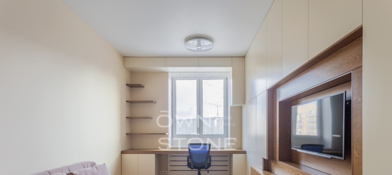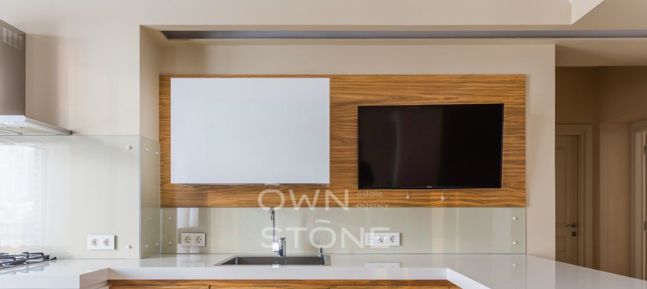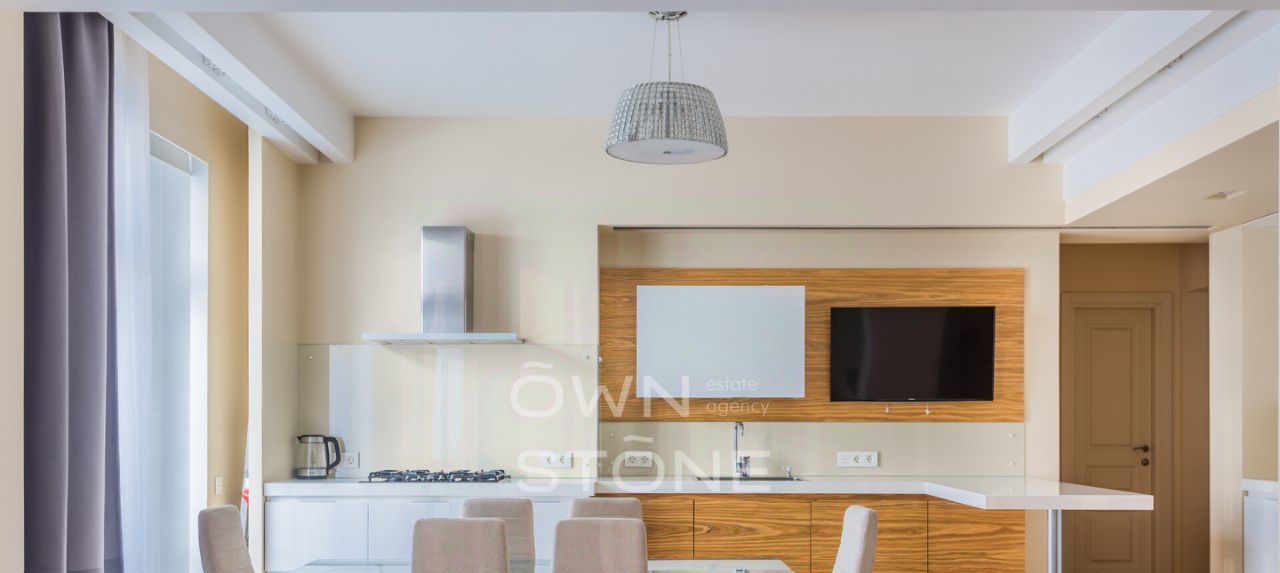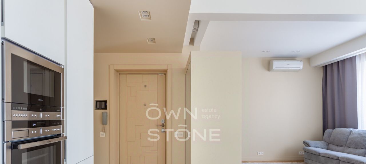 — Ремонт в современном стиле, светлые тона. Полностью меблирована, вся техника встроена.