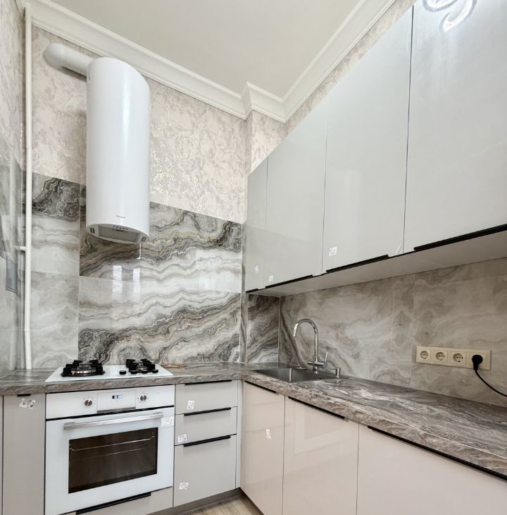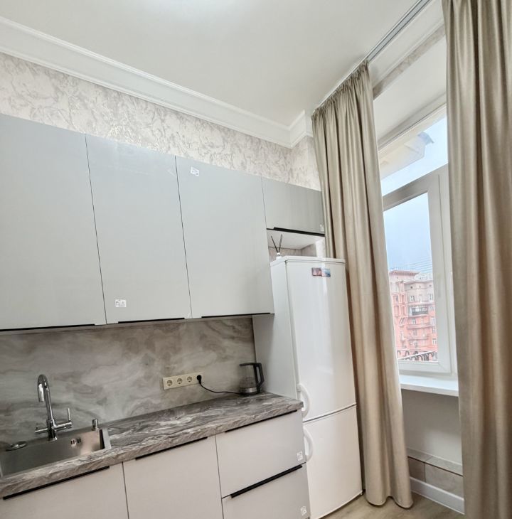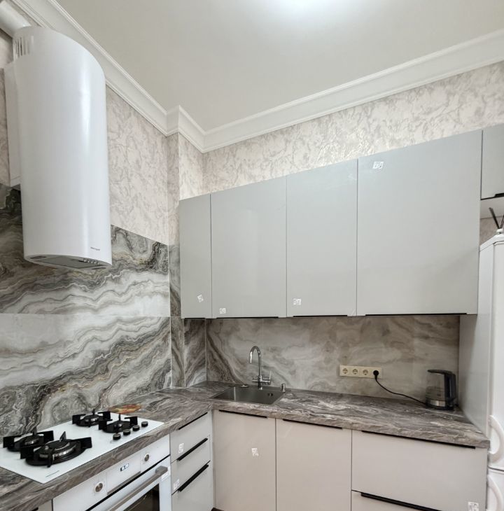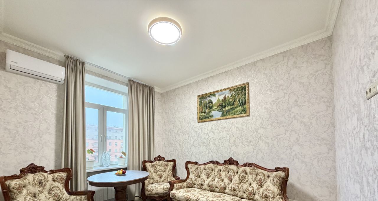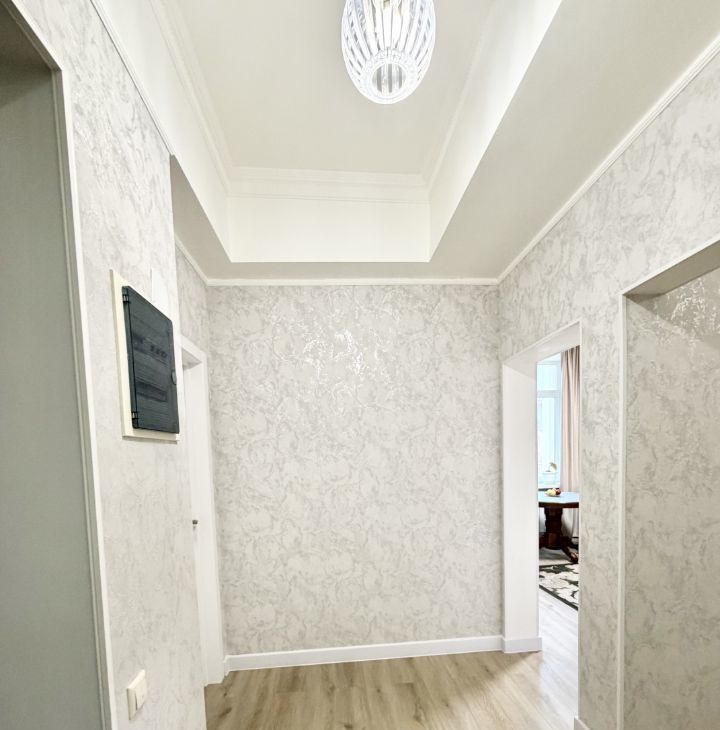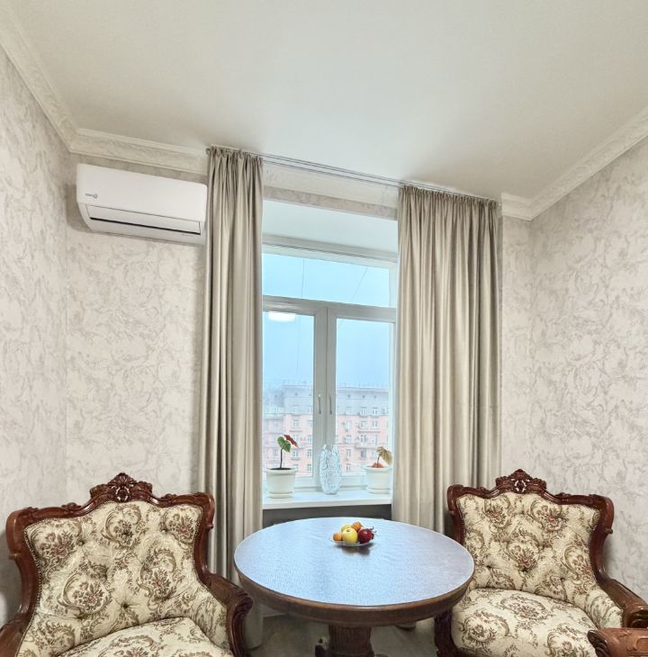 Сдается уютная трехкомнатная квартира с евроремонтом в Сталинском доме с красивой архитектурой . Общая площадь квартиры — 77 кв. м, жилая площадь — 36 кв. м, а кухня порадует просторными 12 кв. м. Квартира расположена на 5 этаже 8-этажного дома, что обеспечивает отличный вид из окон, которые выходят на улицу. Высокие потолки — 3.2 метра создают ощущение простора и свободы.