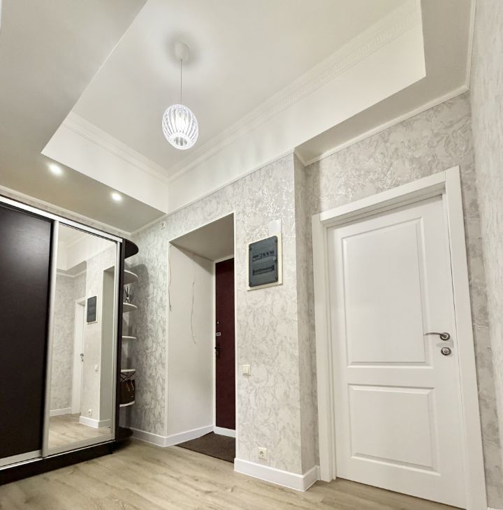 В квартире сделан современный евроремонт, установлена необходимая мебель на кухне и в комнате. Все комнаты оснащены техникой: холодильник, посудомоечная и стиральная машины, а также кондиционер для комфортного климата в любое время года. В ванной комнате есть ванна, где можно расслабиться после долгого дня. Один отдельный санузел обеспечивает удобство и приватность. ремонт новый! никто не жил! мебель также новая, кровати с подъёмным механизмом . большая, вместительная гардеробная комната.