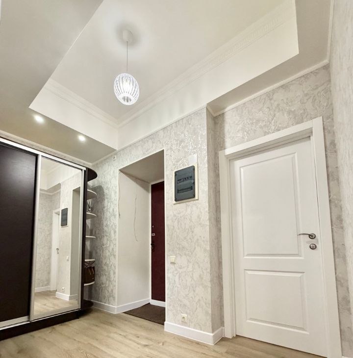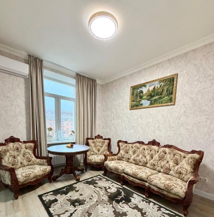 В квартире выполнен современный евроремонт. Гостиная и спальни обставлены мебелью, на кухне также есть вся необходимая мебель. В наличии вся необходимая техника: кондиционер, холодильник, посудомоечная и стиральная машины. Просторная ванная комната, оборудованная ванной. Из окон квартиры открывается вид на улицу, а для утренних или вечерних чаепитий есть балкон.