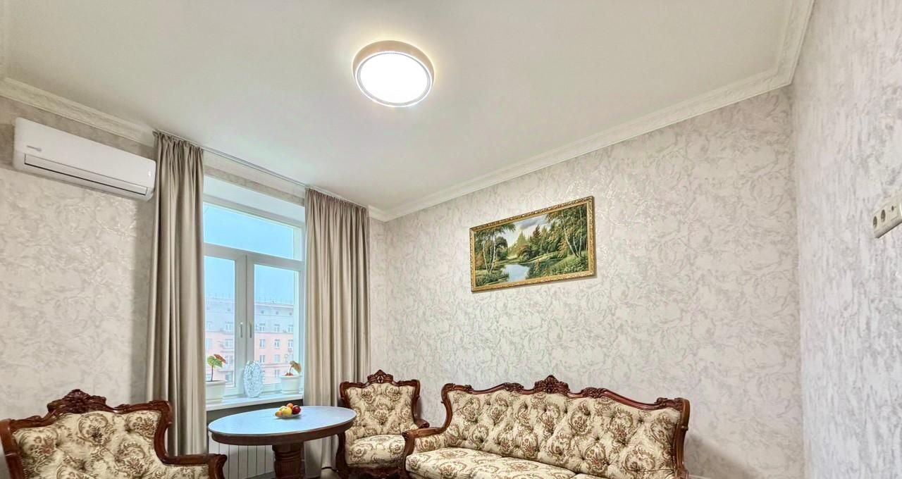 Сдается уютная трехкомнатная квартира, в кирпичном доме. Общая площадь квартиры — 80 кв. м, жилая площадь — 36 кв. м, кухня — 12 кв. м. Квартира находится на 5 этаже восьмиэтажного дома. Высокие потолки — 3.2 метра, что создает ощущение простора. До ближайшего метро всего 11 минут пешком, что очень удобно для ежедневных поездок.
