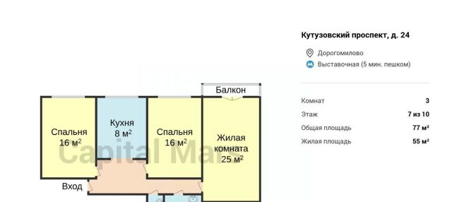 3-к кв. Москва Кутузовский просп., 24 (77.0 м²)