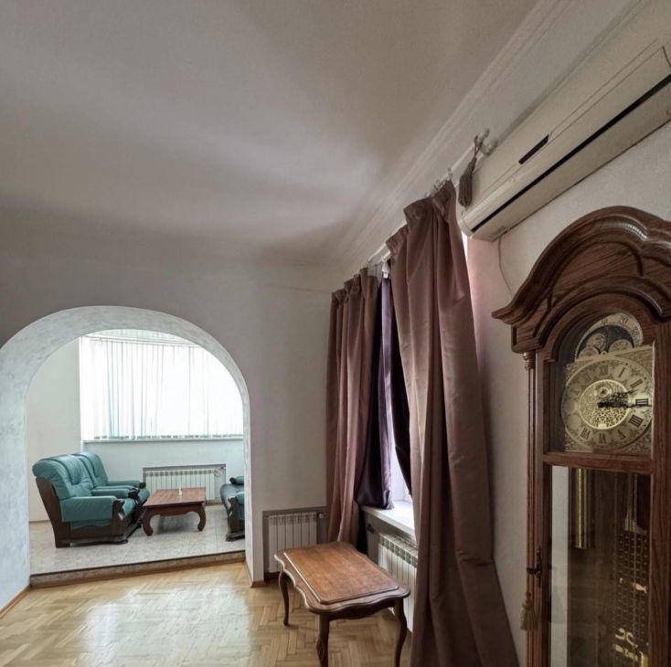 Квартира находится в известном сталинском доме,на 3 этаже, окна на улицу и во двор.