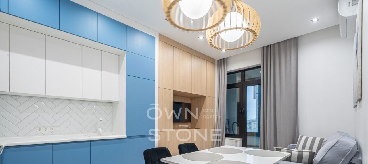 Квартира после евроремонта, готова к заселению. В наличии вся необходимая мебель: кухня полностью оборудована, в комнатах уютная обстановка. Техника на высшем уровне: кондиционер, холодильник, посудомоечная и стиральная машины, а также телевизор. В квартире два совмещенных санузла, в одном из которых установлена душевая кабина. Лоджия добавляет дополнительное пространство для отдыха.