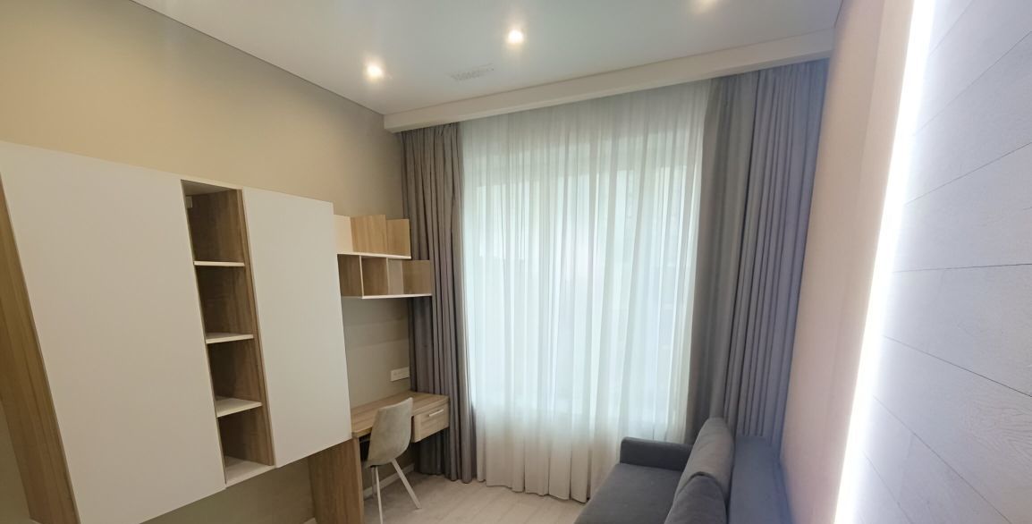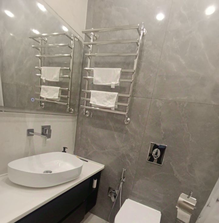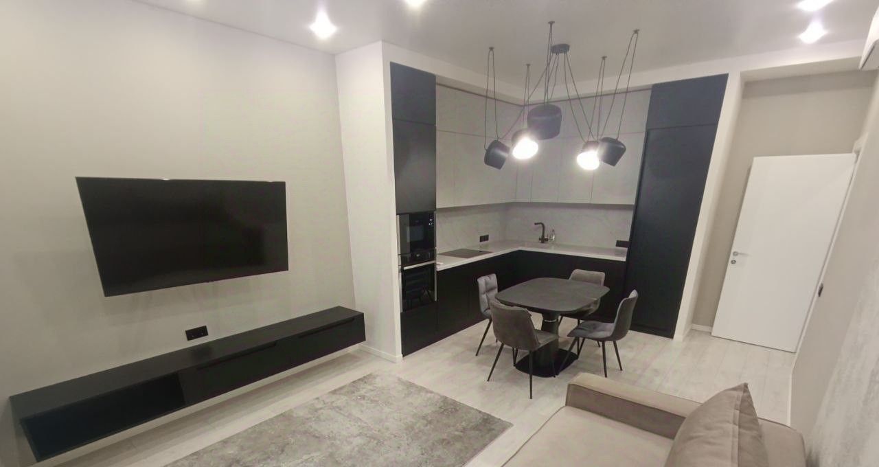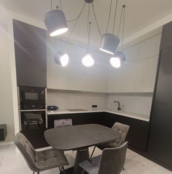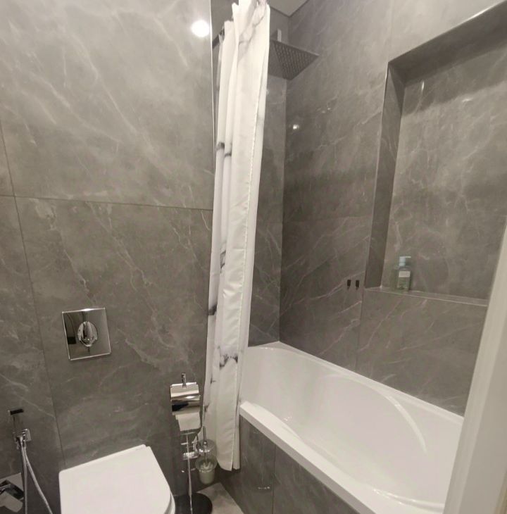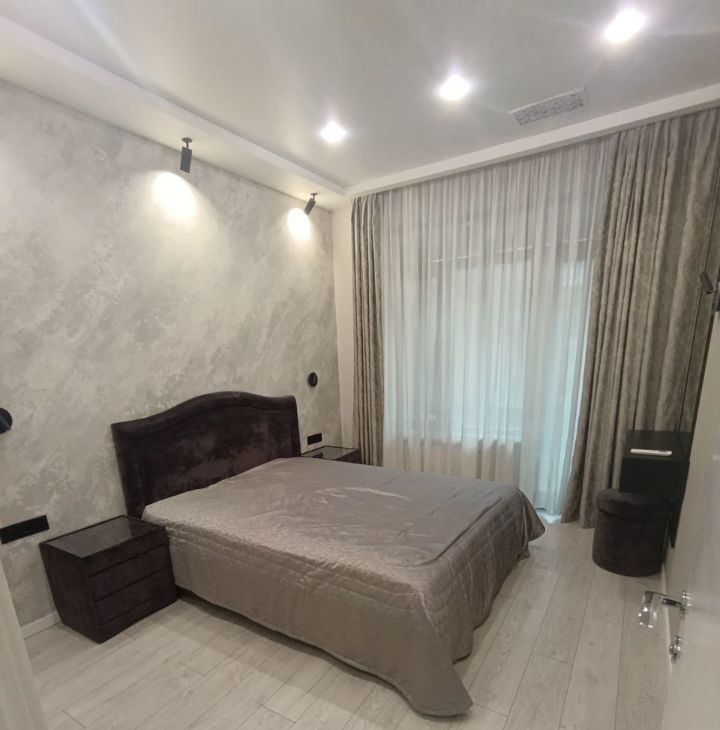 Квартира с дизайнерским ремонтом и полностью обставлены мебелью. Кухня- гостиная площадью 20 кв. м оборудована всей необходимой техникой: есть посудомоечная машина, холодильник и стиральная машина. В комнатах установлен кондиционер и телевизор. В квартире два совмещённых санузла с ваннами, что делает проживание здесь максимально комфортным. Небольшая лоджия добавляет дополнительное пространство для отдыха.