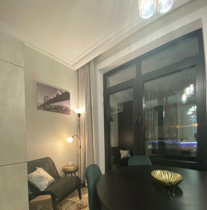 Выполнен новый дизайнерский ремонт, произведена шумоизоляция, имеется кондиционирование и интернет. В квартире имеются просторная кухня-столовая с красивым балконом, две спальни, в одной двуспальная кровать с подъёмным механизмом, вместительная гардеробная, комод, тумбочки; во второй спальне легко раскладываемый двуспальный диван, шкаф, компьютерный стол, комод.