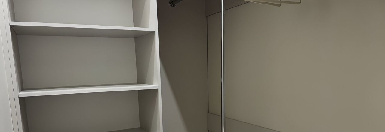 • Встроенная гардеробная комната с системой хранения, ЗЕРКАЛЬНАЯ ДВЕРЬ;