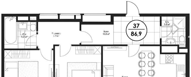 Три изолированные комнаты, просторная кухня с балконом, кладовка, кладовка-прачечная. В квартире есть вся необходимая бытовая техника и мебель для комфортного проживания.