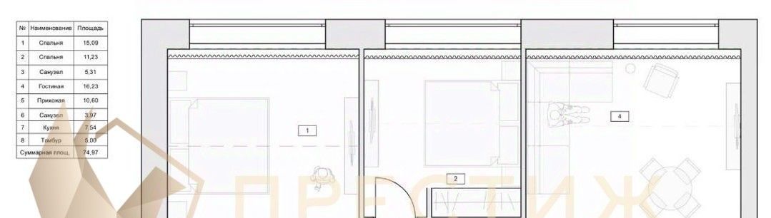 3-к кв. Москва Ленинградский просп., 36с30 (75.0 м²)