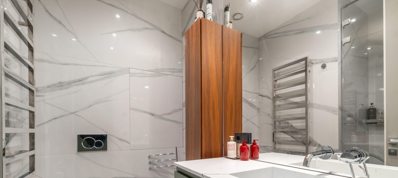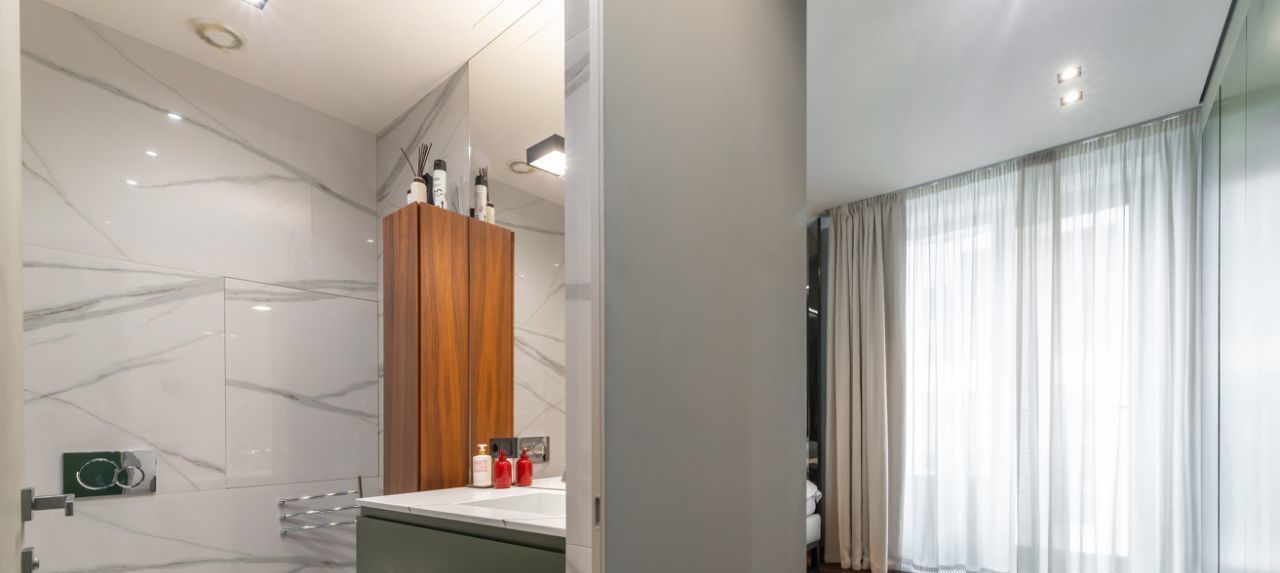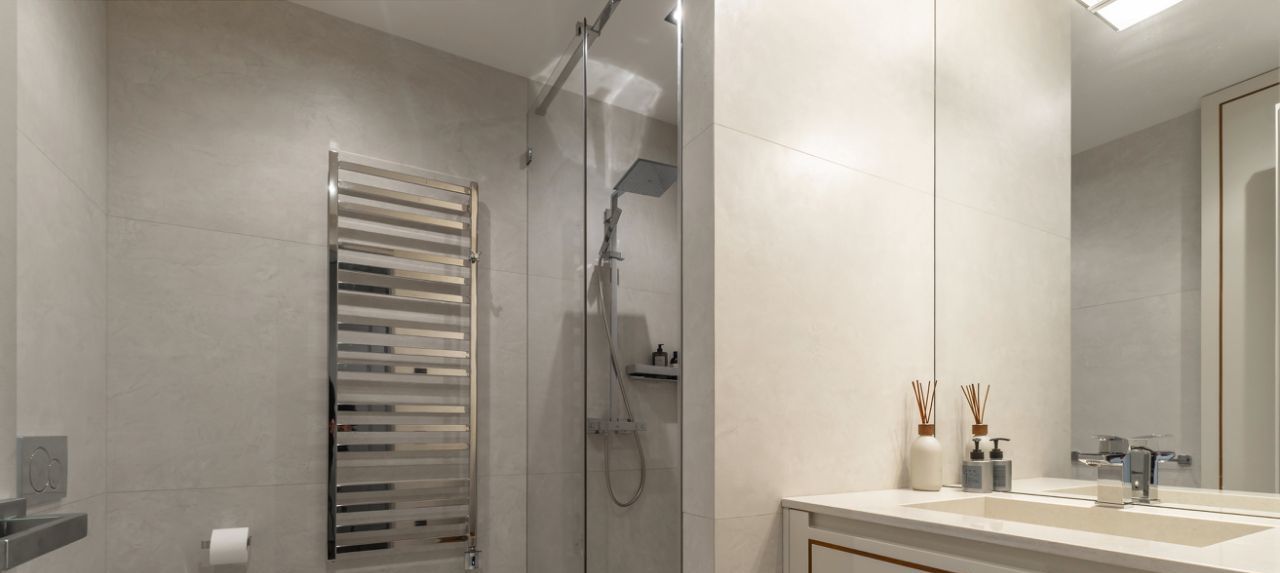Современные 3-х комнатные апартаменты в элитном жилом комплексе. Функциональная планировка включает в себя гостиную совмещенную с кухнеи и обеденнои зонои. Вместительная гардеробная комната при входе. Полностью укомплектованная кухня, включая винныи шкаф, кофе-машину и другую бытовую технику необходимую для комфортного проживания. Установлены дополнительные современные фильтры на воду. 2 спальни с собственными ванными комнатами и вместительными системами хранения. В апартаментах находятся оригиналы объектов искусства. Потрясающие виды. 1 м/м Место в подземном паркинге.