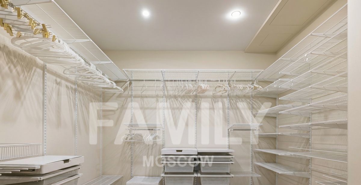 | Просторная гардеробная с системой хранения, которая выдержит гардероб двух активных людей.