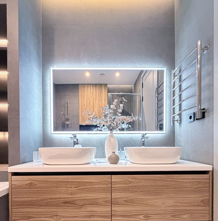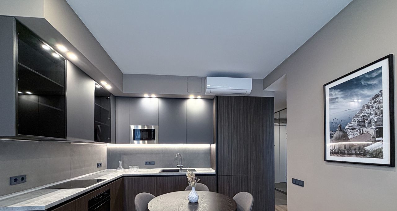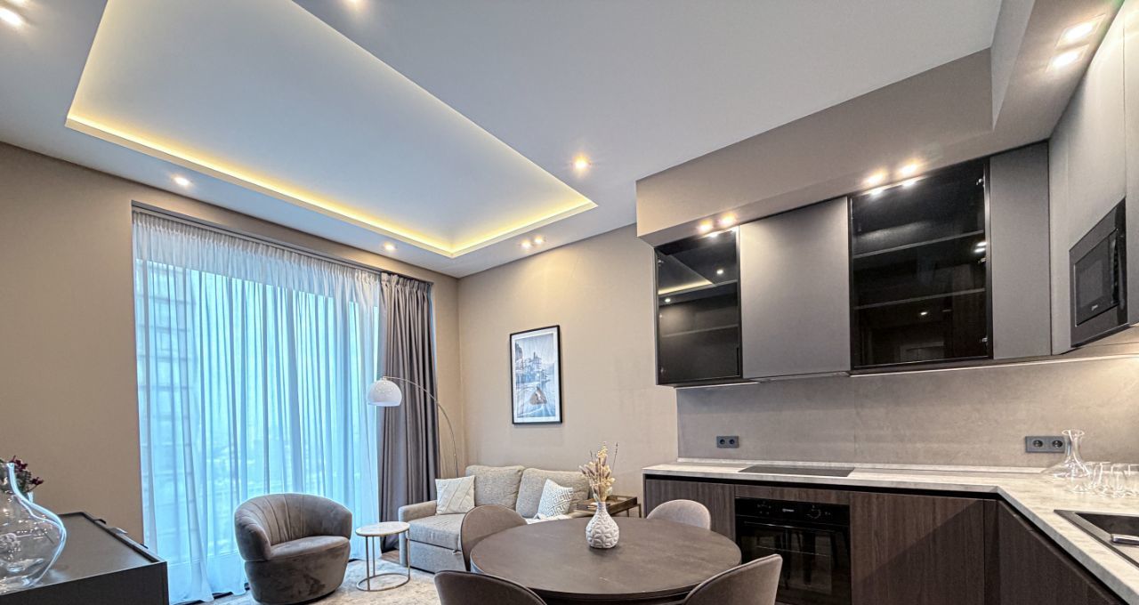Современный дизайн. Квартира полностью меблирована, оснащена современным оборудованием.