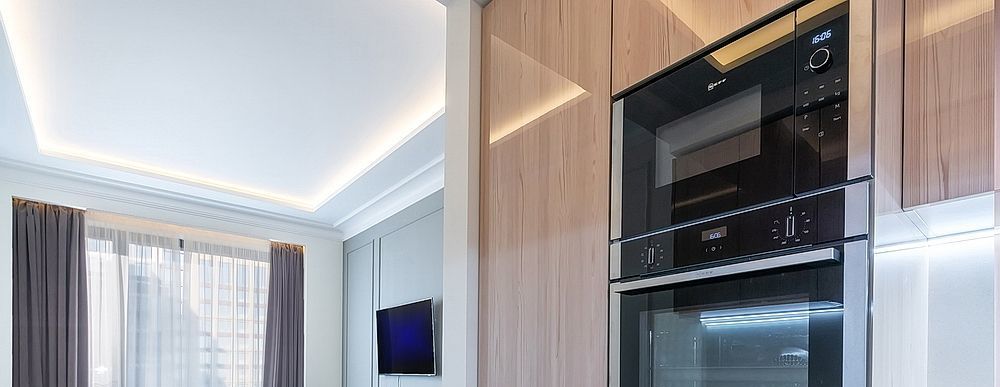 В квартире установлена кухонная мебель от ведущих производителей, вся необходимая бытовая техника премиум-класса, встроено освещение, большое количество мест хранения. Теплые полы, система кондиционирования и вентиляции.