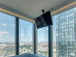 Элементы системы умный дом, возможность оплаты коммунальных услуг, заказа уборки квартиры через приложение для смартфона, несколько зон ресепшн. шесть высокоскоростных лифтов.