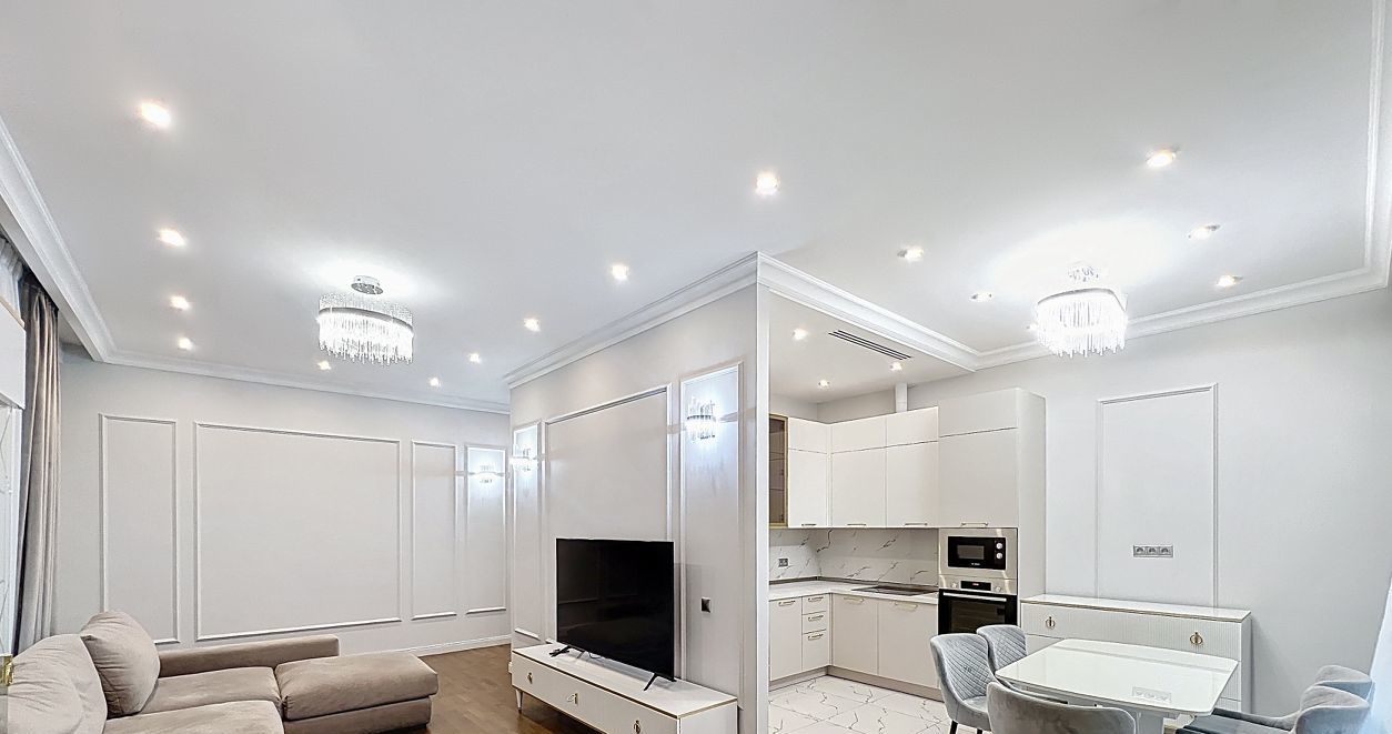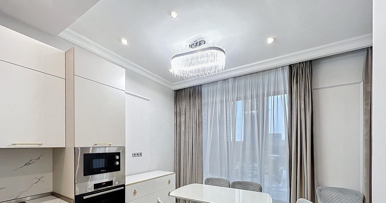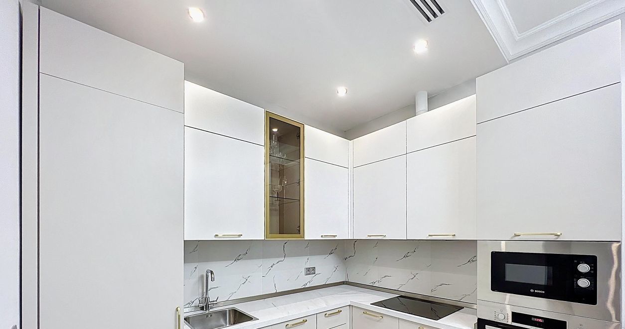 Квартира оборудована всей необходимой бытовой техникой. Теплые полы, система кондиционирования и вентиляции. Панорамные окна со специальным напылением от солнца.