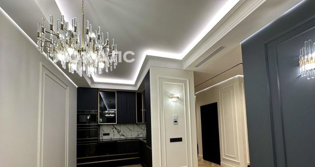 Выполнен качественный дизайнерский ремонт в современном стиле и спокойных оттенках.Квартира оборудована техникой премиум класса.Бытовая техника на кухне итальянского производителя SMEG,встроенная кофе машина,посудомоечная машина.Холодильник Liebherr,винный шкаф Liebherr.Сантехника от немецкого производителя Rehau.Установлена удобная регулировка вентиляционной системы помещения. В ванной комнате установлены стиральная машина и сушильная машина от немецкого бренда Miele.