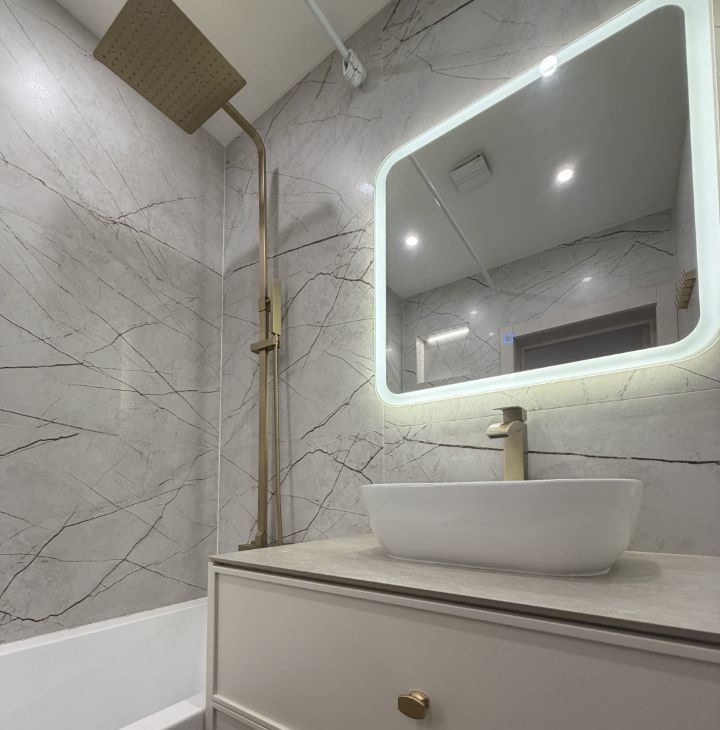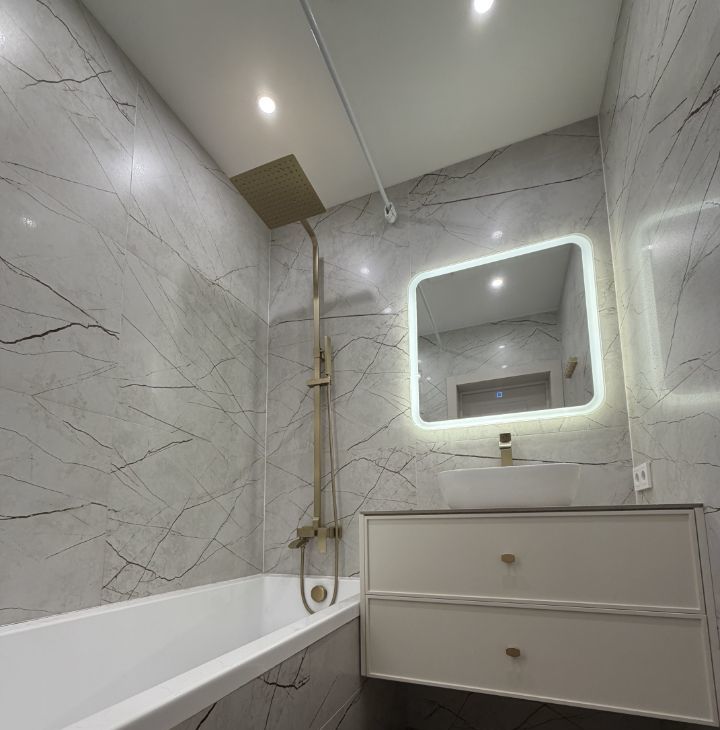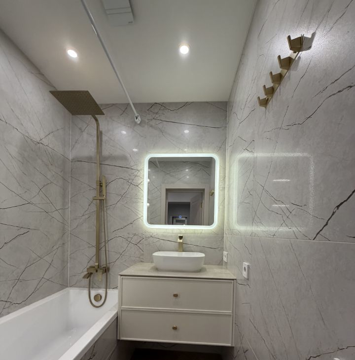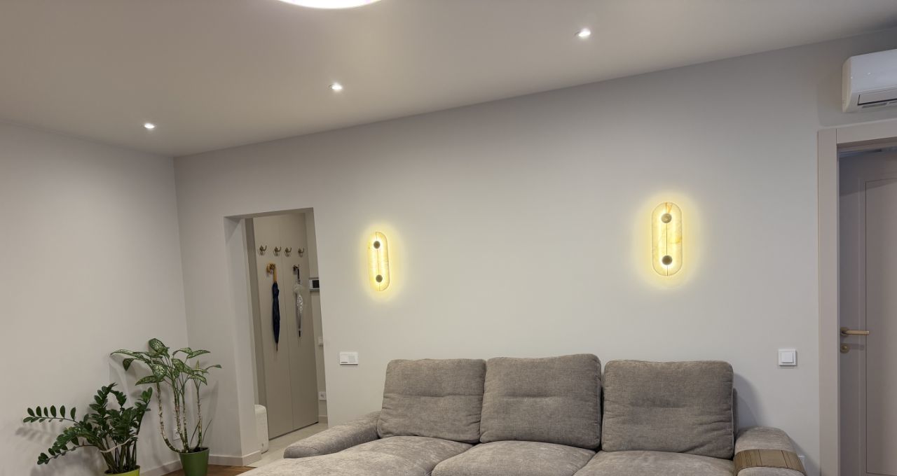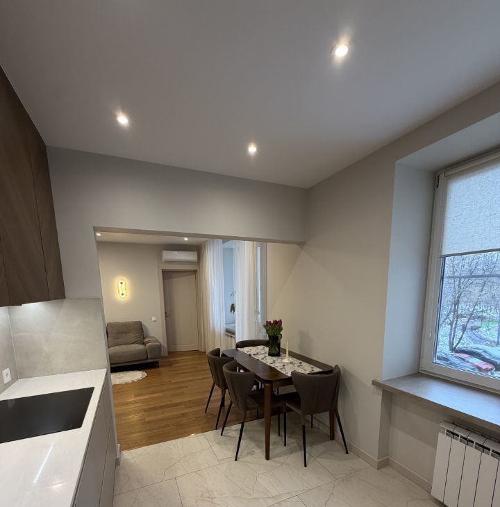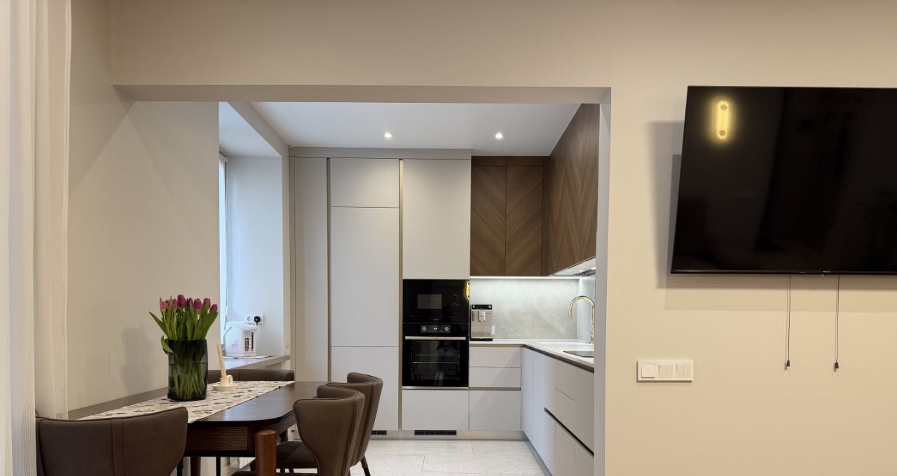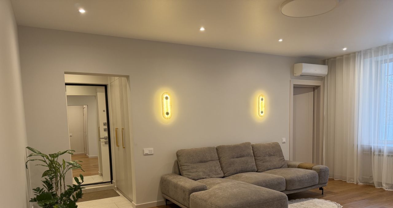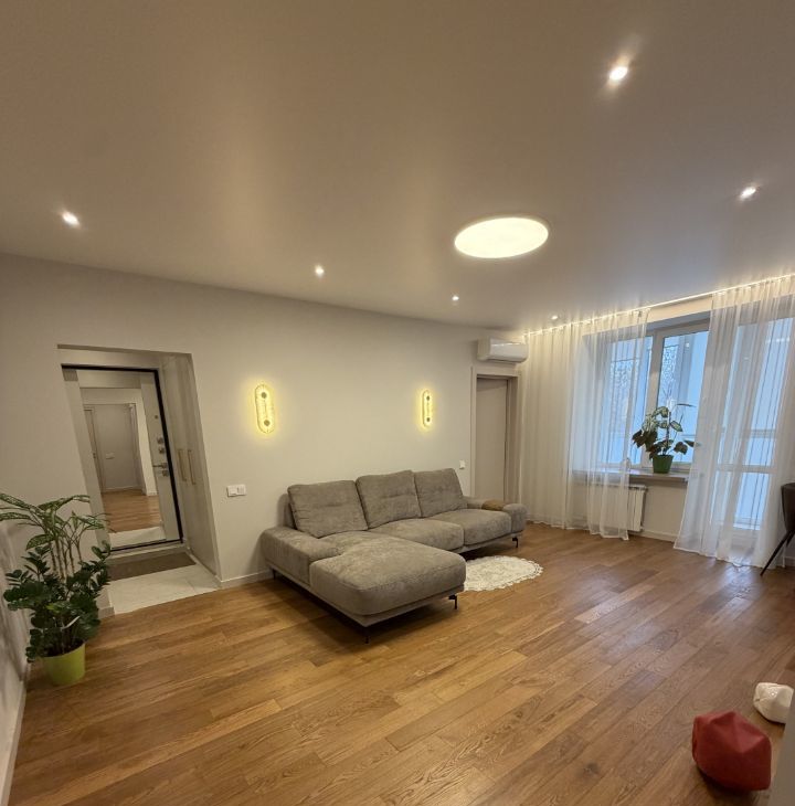 В квартире выполнен современный дизайнерский ремонт. Состояние — под тапочки (новый ремонт).