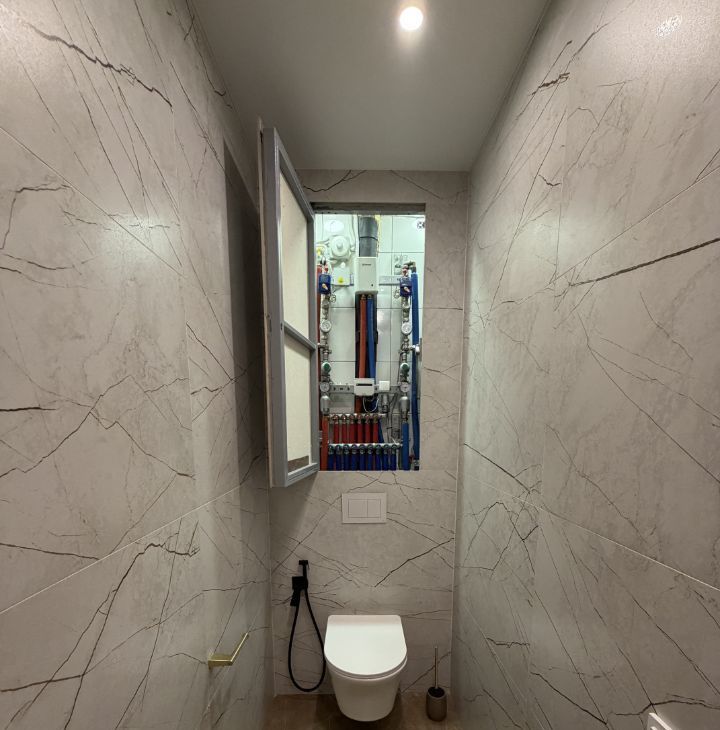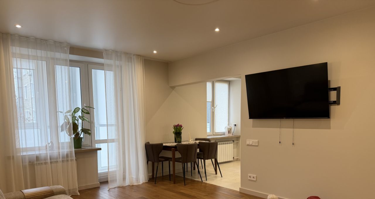 Проведена полная замена электросети и сантехнических коммуникаций.На полу уложен натуральный паркет. В отделке использованы износостойкие материалы премиальных брендов.