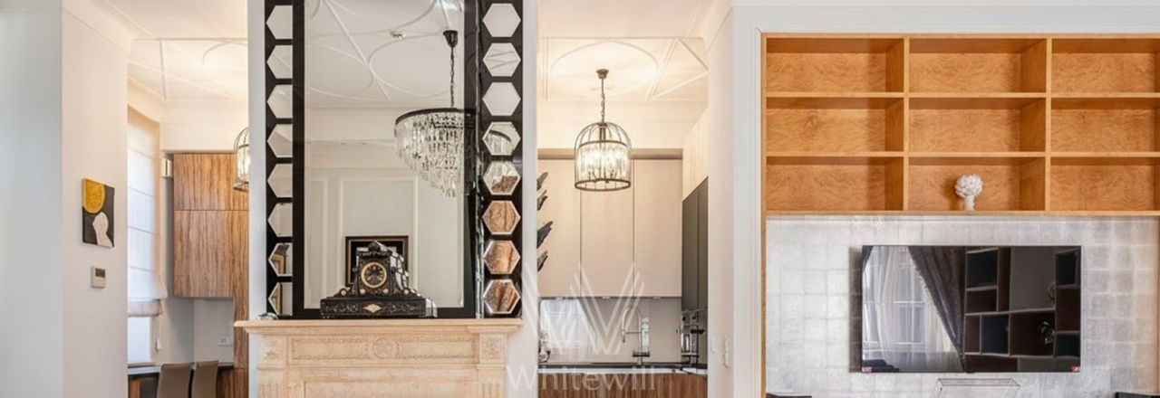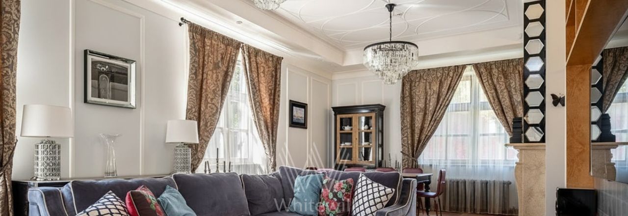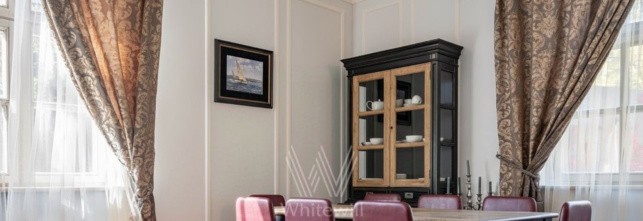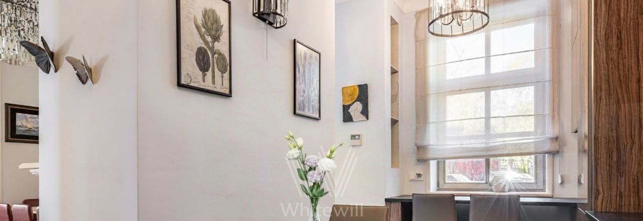Трёхуровневый таунхаус площадью 180 м² в комплексе премиум-класса Tweed Park на территории природно-исторического усадебного парка "Покровское-Стрешнево". Таунхаус расположен на приватной территории с выходом в парк. Выполнена дизайнерская премиальная отделка в английском стиле с использованием натурального мрамора и высококачественных натуральных материалов. Интерьеры укомплектованы мебелью от ведущих европейских производителей и бытовой техникой.