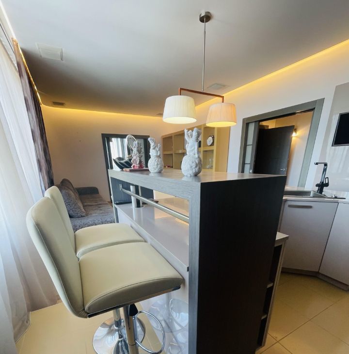 Интерьер квартиры выполнен по индивидуальному дизайнерскому проекту, где безупречно соединены эстетика, функциональность и премиальные материалы. Квартира полностью укомплектована мебелью и техникой класса люкс.
