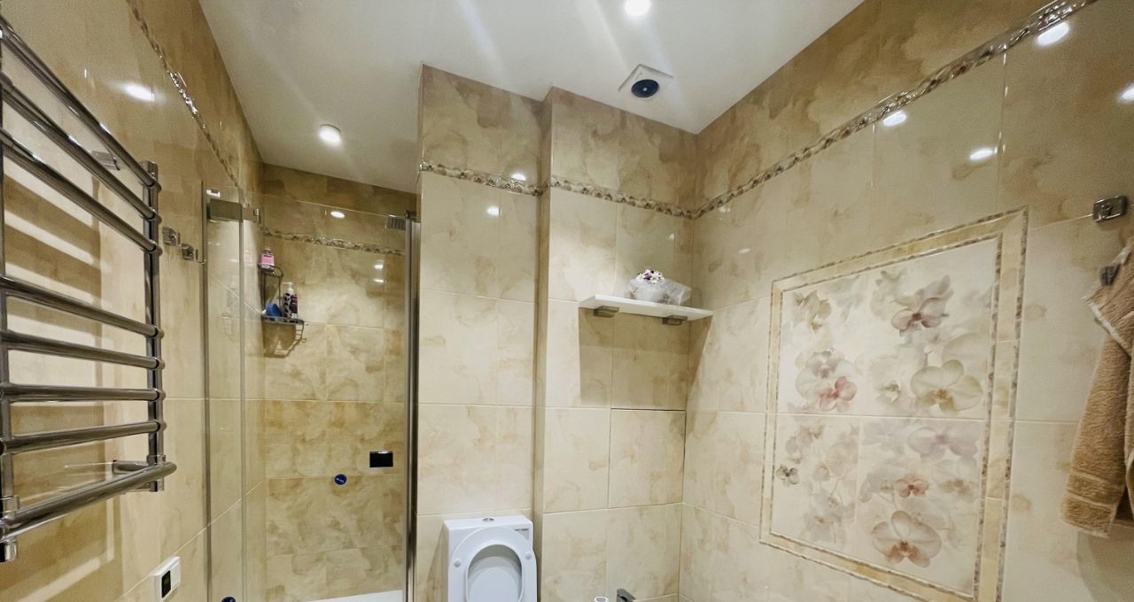 4) Просторная ванная комната с душевой кабиной, беде, подогреваемым полом.