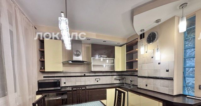 Квартира полностью меблирована. На кухне: плита, вытяжка, холодильник, духовой шкаф, печь-свч, посудомойка.
