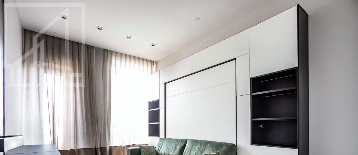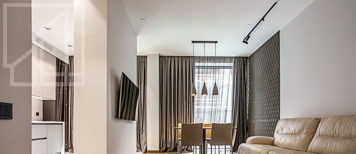 Планировка: просторная кухня-гостиная, изолированная спальня, совмещенный санузел, жилая комната свободного назначения. Панорамные окна выходят в тихий двор. Квартира полностью меблирована и оснащена всей необходимой для комфортной жизни техникой. Большое количество мест хранения, полностью встраиваемая кухня.