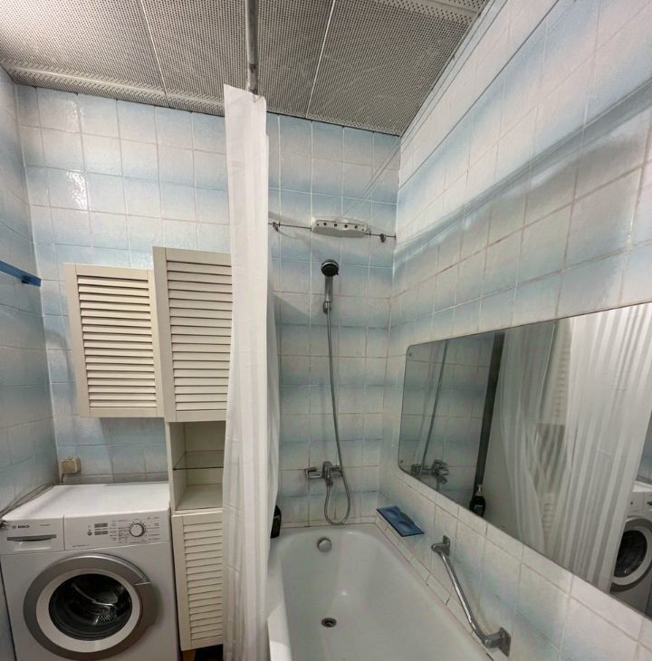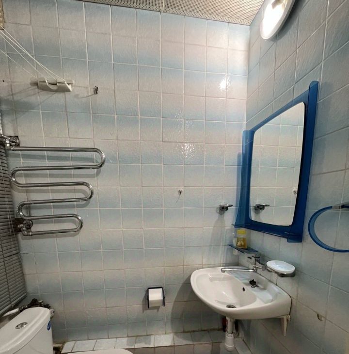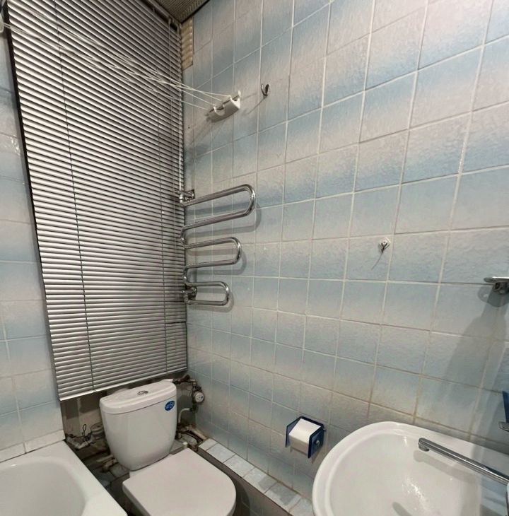 Санузел совмещённый , в плитке до потолка.